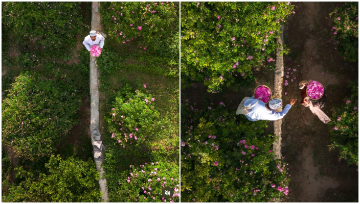 ജബൽ അഖ്ദറിൽ മാർച്ച് മുതലാണ് റോസാപ്പൂക്കളുടെ വിളവെടുപ്പ് ആരംഭിക്കുന്നത്. ഇത് മെയ് മാസം വരെ തുടരും