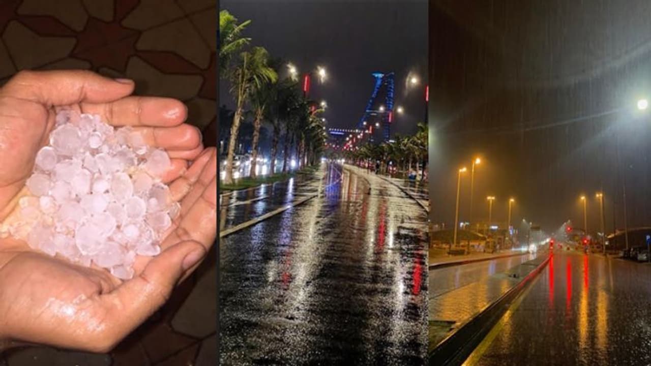 പല ഭാഗങ്ങളിലും രാത്രി മുഴുവൻ മഴ പെയ്തു. റിയാദ് നഗരത്തിലുൾപ്പെടെ ഞായറാഴ്ച പകലും മഴയുണ്ടായിരുന്നു. ഇടയ്ക്ക് മഴ തോർന്നെങ്കിലും ആകാശം മേഘാവൃതമായിരുന്നു. ഉച്ചനേരത്ത് നഗരത്തെ കോടമഞ്ഞ് പൊതിയുകയും ചെയ്തു. ഇതോടെ താപനില നന്നായി താഴ്ന്നു. വെള്ളി, ശനി ദിവസങ്ങളിൽ തണുപ്പ് പൂർമായി മാറുകയും ഉഷ്ണനില ഉയരുകയും ചെയ്തിരുന്നു. എന്നാൽ ശനിയാഴ്ച രാത്രിയിലെ മഴ മുതൽ കാലാവസ്ഥ വീണ്ടും തണുപ്പിന് വഴിമാറി.