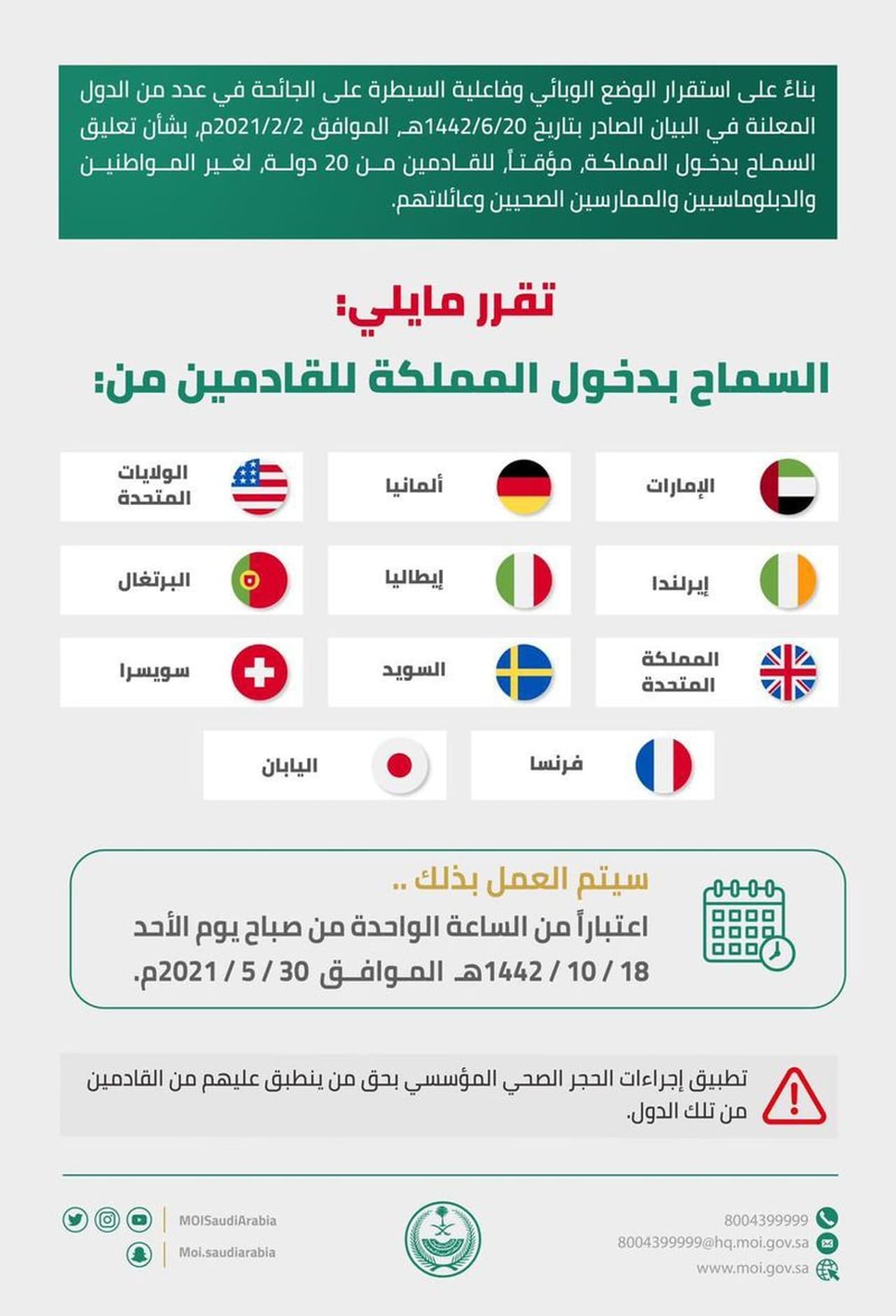 നാളെ (ഞായര്) പുലര്ച്ചെ ഒരു മണി മുതലാണ് 11 രാജ്യങ്ങളില് നിന്ന് സൗദി അറേബ്യയിലേക്കുള്ള പ്രവേശനം അനുവദിക്കുക. ഈ രാജ്യങ്ങളിലൂടെ സൗദിയില് പ്രവേശിക്കുന്നവര്ക്ക് ഒരാഴ്ചത്തെ ഇന്സ്റ്റിറ്റ്യൂഷണല് ക്വാറന്റീന് നിര്ബന്ധമാണ്.