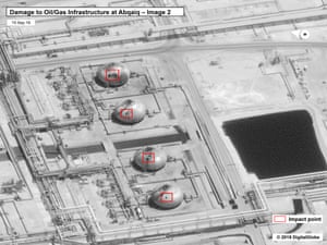 ആക്രമിക്കപ്പെട്ട ഭാഗങ്ങളുടെ ചിത്രങ്ങൾ പരിശോധിച്ചാൽ ആക്രമണം തെക്ക് ഭാഗത്തുള്ള യെമനിൽ നിന്ന് വരുന്നതിനേക്കാൾ, നേരെ എതിർദിശയിലുള്ള ഇറാനിൽ നിന്നോ ഇറാഖിൽ നിന്നോ വന്നിരിക്കാനാണ് സാധ്യതയെന്നാണ് അമേരിക്കയുടെ ആരോപണം.