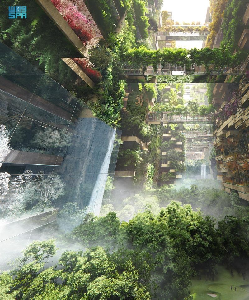 170 കിലോമീറ്റർ നീളത്തിൽ 200 മീറ്റർ വീതിക്കുള്ളിൽ ഇരുവശങ്ങളിലായി ഉയരുന്ന വീടുകളിൽ 90 ലക്ഷം ആളുകൾക്ക് സ്ഥിരതാമസം നടത്താനാവും. ഇത്രയും ലക്ഷം താമസക്കാരെ ഉൾക്കൊള്ളാനാവും വിധം 34 ചതുരശ്ര കിലോമീറ്റർ വിസ്തൃതിയിൽ നിർമിക്കപ്പെടുന്ന ഈ നഗരം സമാന ശേഷിയുള്ള മറ്റ് നഗരങ്ങളുമായി താരതമ്യപ്പെടുത്തുമ്പോൾ അത്ഭുതപ്പെടുത്തുന്നതായി മാറും. അമിതവ്യയമില്ലാതെ തന്നെ ഏറ്റവും മികച്ച അടിസ്ഥാനസൗകര്യം ഒരുക്കാനും മറ്റ് നഗരങ്ങളിൽ ജനവാസത്തിന് ആവശ്യമായി വരുന്നത്ര പ്രവർത്തനങ്ങൾ കൂടാതെ തന്നെ ഉയർന്ന കാര്യക്ഷമത സൃഷ്ടിക്കാനും കഴിയുന്നതാണ് ‘ദ ലൈൻ’ രൂപകൽപന.