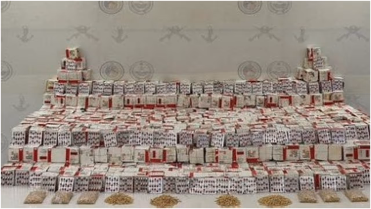 ലഹരിമരുന്ന് കടത്ത് തടയാൻ അതിർത്തികളിൽ കർശന പരിശോധന തുടരുന്നതിനിടെയാണ് അസീറിലെ അൽ-റബൂഅ സെക്ടറിൽ ഈ വൻ ശേഖരം കണ്ടെത്തിയത്. രാജ്യത്ത് വിൽപനക്ക് നിയന്ത്രണമുള്ള 187,800-ലധികം മെഡിക്കൽ ലഹരിഗുളികകളും മയക്കുമരുന്നായ 9,600-ലധികം ആംഫെറ്റാമിൻ ഗുളികകളുമാണ് പിടികൂടിയത്. ലഹരിമരുന്ന് കടത്തോ വിതരണമോ ശ്രദ്ധയിൽപ്പെട്ടാൽ ഉടൻ അധികൃതരെ വിവരം അറിയിക്കണമെന്ന് സുരക്ഷാ ഏജൻസികൾ ആവശ്യപ്പെട്ടു. വിവരങ്ങൾ കൈമാറാൻ ഇനി പറയുന്ന നമ്പറുകൾ ഉപയോഗിക്കാം: മക്ക, മദീന, റിയാദ്, കിഴക്കൻ പ്രവിശ്യ: 911, മറ്റ് പ്രദേശങ്ങൾ: 999. വിവരങ്ങൾ നൽകുന്നവരുടെ പേരുവിവരങ്ങൾ തികച്ചും രഹസ്യമായി സൂക്ഷിക്കുമെന്നും അധികൃതർ വ്യക്തമാക്കി.