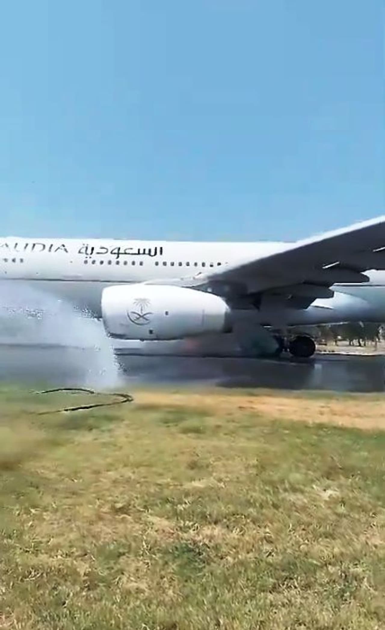 വിമാനത്താവളത്തിൽ ഇറങ്ങി റൺവേയിലൂടെ ഓടുന്നതിനിടെ വിമാനത്തിന്റെ ലാൻഡിങ് ഗിയറിൽ നിന്ന് തീയും പുകയും ഉയരുകയായിരുന്നു.