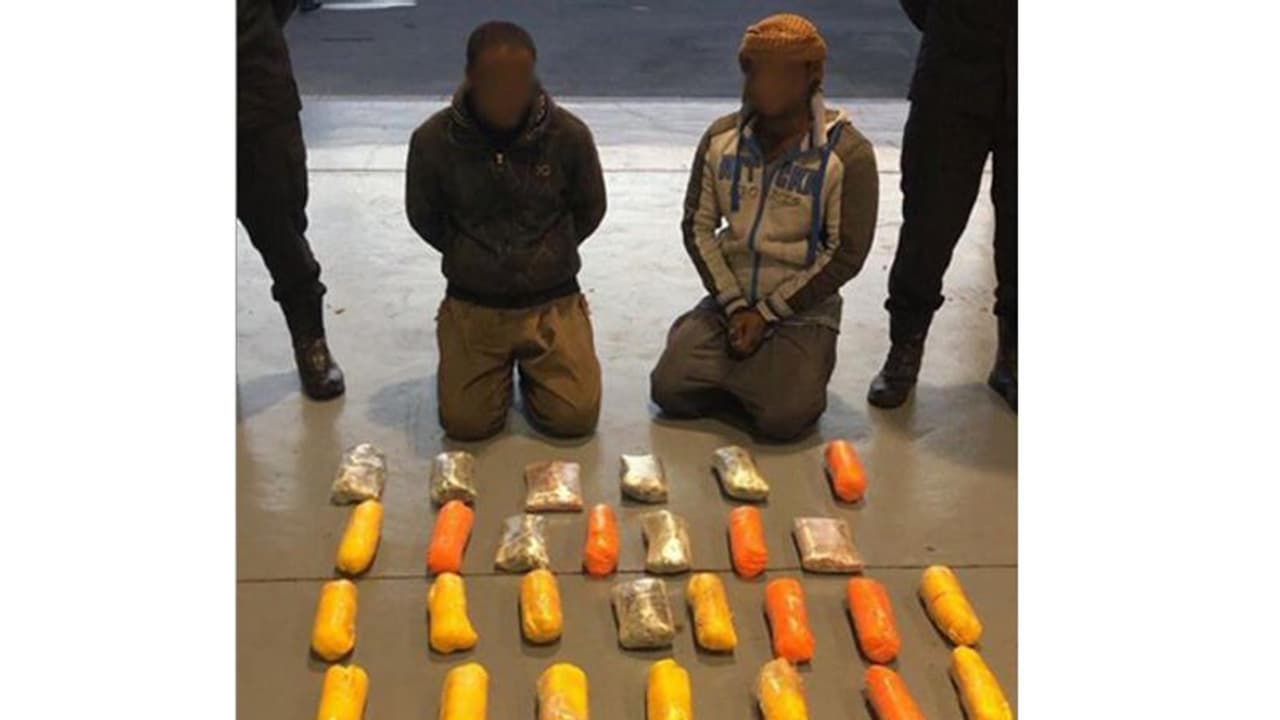 അജ്ഞാത ബോട്ടിനെക്കുറിച്ച് കോസ്റ്റ് ആന്റ് ബോര്ഡര് സെക്യൂരിറ്റി ജനറല് ഡയറക്ടറേറ്റില് വിവരം ലഭിച്ചതിനെ തുടര്ന്നാണ് പരിശോധന നടത്തിയത്. ബോട്ട് പിടിച്ചെടുത്ത് യാത്രക്കാരെ പരിശോധനയ്ക്ക് വിധേയമാക്കിയപ്പോള് ചെറിയ കവറുകളിലായി ഒളിപ്പിച്ച നിലയില് ഹാഷിഷ് കണ്ടെത്തി. പ്രതികളെ അറസ്റ്റ് ചെയ്ത് തുടര് നടപടികള്ക്കായി കൈമാറി.