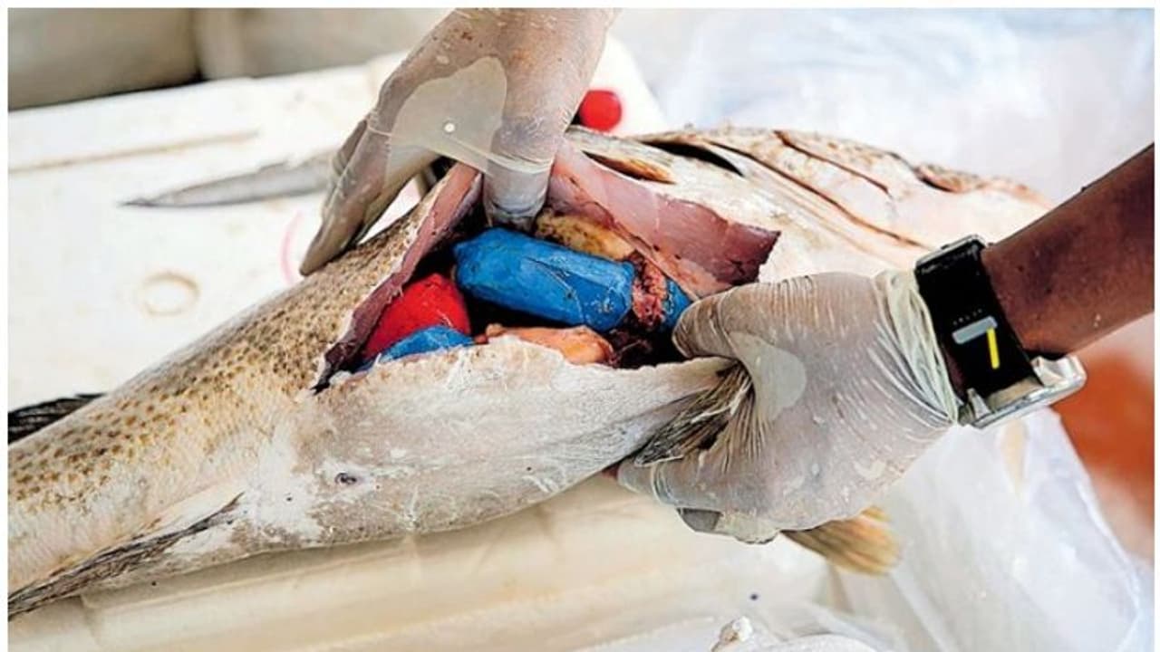 വിപണനത്തിനായി എയര് കാര്ഗോ വഴി വിദേശത്ത് നിന്നെത്തിച്ച മത്സ്യങ്ങളില് ചിലതിന്റെ വയറ്റില് പ്ലാസ്റ്റികില് പൊതിഞ്ഞ നിലയിലാണ് ലഹരിവസ്തുക്കള് കണ്ടെത്തിത്.