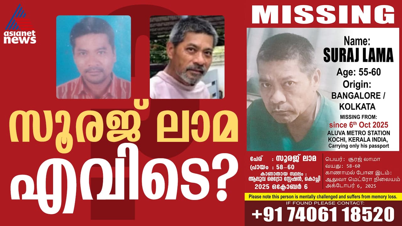 കുവൈത്തിൽ അടുത്തിടെയുണ്ടായ വിഷമദ്യ ദുരന്തത്തിനിരയായി ഓര്മ്മ നഷ്ടപ്പെട്ടയാളാണ് സൂരജ് ലാമ. കൊച്ചിയിൽ വിമാനം ഇറങ്ങിയ സൂരജ്, മെട്രോയുടെ ഫീഡർ ബസിൽ ആലുവ മെട്രോ സ്റ്റേഷനിൽ എത്തിയതായി അന്വേഷണത്തിൽ ബോധ്യപ്പെട്ടിരുന്നു. പിന്നീട് 10നാണ് സൂരജിനെ കുറിച്ചുള്ള വിവരം ലഭിച്ചത്. പത്തിന് എറണാകുളം മെഡിക്കൽ കോളജ് ആശുപത്രിയിൽ ചികിത്സ തേടി. പരിശോധനയിൽ കാര്യമായ അസുഖങ്ങളൊന്നും കണ്ടെത്താതിരുന്നതിനെ തുടർന്നു ഡിസ്ചാർജ് ചെയ്തു. അപ്പോഴൊന്നും ആശുപത്രി അധികാരികൾക്കോ പൊലീസിനോ സൂരജ് ആരാണെന്നോ എങ്ങനെയാണ് കൊച്ചിയിൽ എത്തിയതെന്നോ അറിയില്ലായിരുന്നു. രണ്ട് ദിവസത്തിന് ശേഷമാണ് കുവൈത്തിൽ നിന്ന് സൂരജിനെ കൊച്ചിയിലേക്ക് വിമാനം കയറ്റിവിട്ട കാര്യം ബെംഗളൂരുവിലെ സൂരജിന്റെ കുടുംബം അറിയുന്നത്.