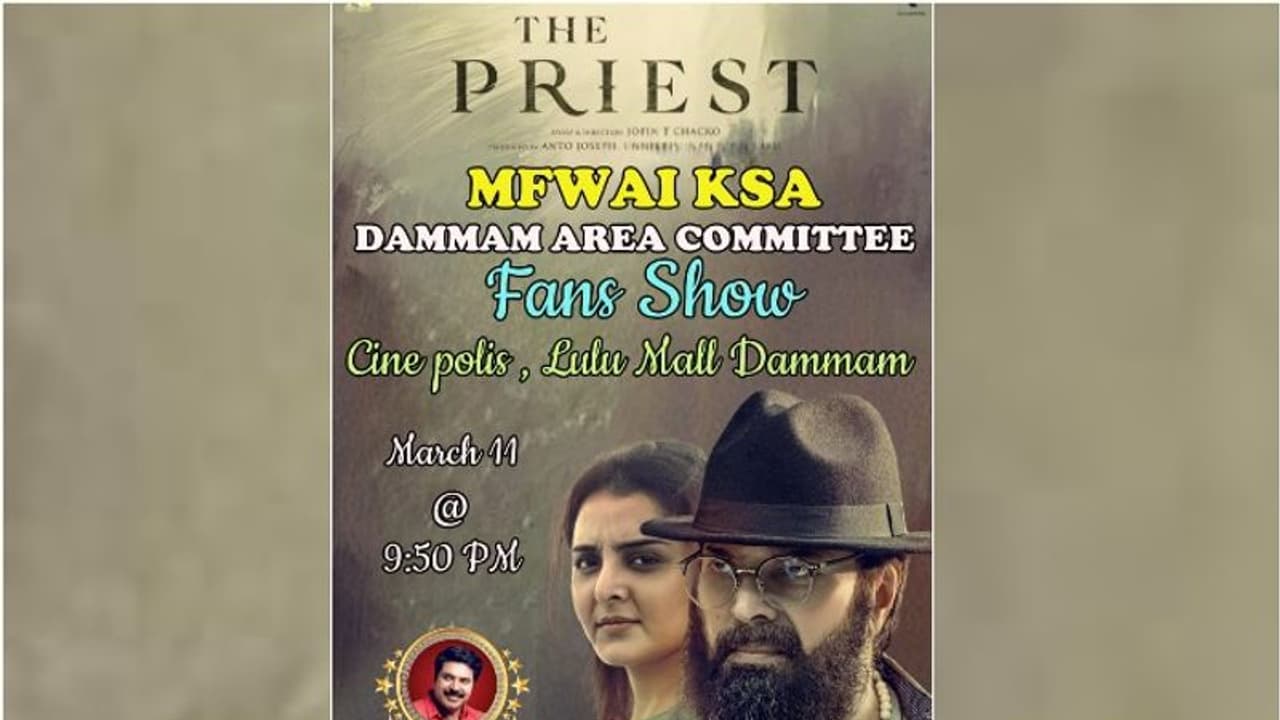 റിയാദ്: ലോകമാകെ വ്യാഴാഴ്ച പ്രദര്ശനം ആരംഭിച്ച മലയാള ചലച്ചിത്രം 'ദി പ്രീസ്റ്റി'ന്റെ റിലീസ് ആഘോഷമാക്കി സൗദി അറേബ്യയിലെ മമ്മൂട്ടി ഫാന്സ്. മമ്മൂട്ടി ഫാന്സ് ആന്ഡ് വെല്ഫെയര് അസോസിയേഷന് (MFWAI, KSA) സൗദി ചാപ്റ്ററിന്റെ റിയാദ്, ജിദ്ദ, ദമ്മാം ഏരിയ കമ്മറ്റികളാണ് ഫാന്സ് ഷോയും ആഘോഷ പരിപാടികളും സംഘടിപ്പിച്ചത്.