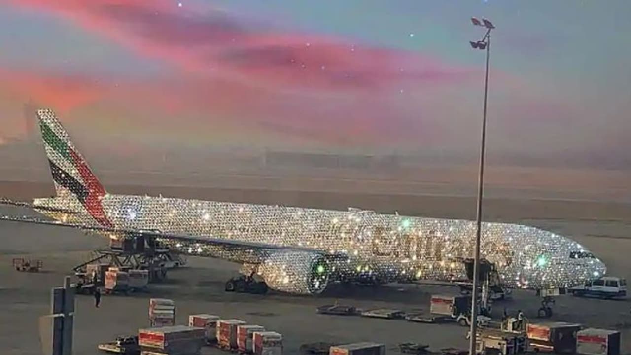 വജ്രം പതിച്ച ഒരു വിമാനത്തിന്റെ ചിത്രം കുറച്ച് ദിവസമായി സാമൂഹ്യമാധ്യമങ്ങളിൽ വ്യാപകമായി പ്രചരിക്കുന്നുണ്ട്. പറക്കാൻ തയ്യാറായി നിൽക്കുന്ന വജ്രം പതിച്ച ആ വിമാനം കുറച്ചൊന്നുമല്ല ആളുകളെ ആശയക്കുഴപ്പത്തിലാക്കിയത്. എമിറേറ്റ്സ് എയർലൈൻ പോസ്റ്റ് ചെയ്ത ചിത്രം കണ്ടവർക്കൊക്കെ യഥാർത്ഥത്തിൽ അത് വജ്രം തന്നെയാണോ എന്നതായിരുന്നു പ്രധാന സംശയം.