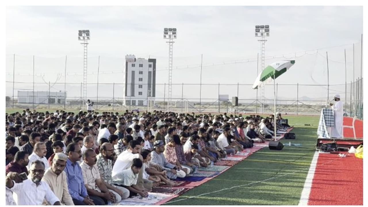 ഗാല അൽ റുസൈഖി ഗ്രൗണ്ടിൽ നടന്ന പെരുന്നാൾ നമസ്കാരത്തിന് അബ്ദുൽ അസീസ് വയനാടും നേതൃത്വം നൽകി.