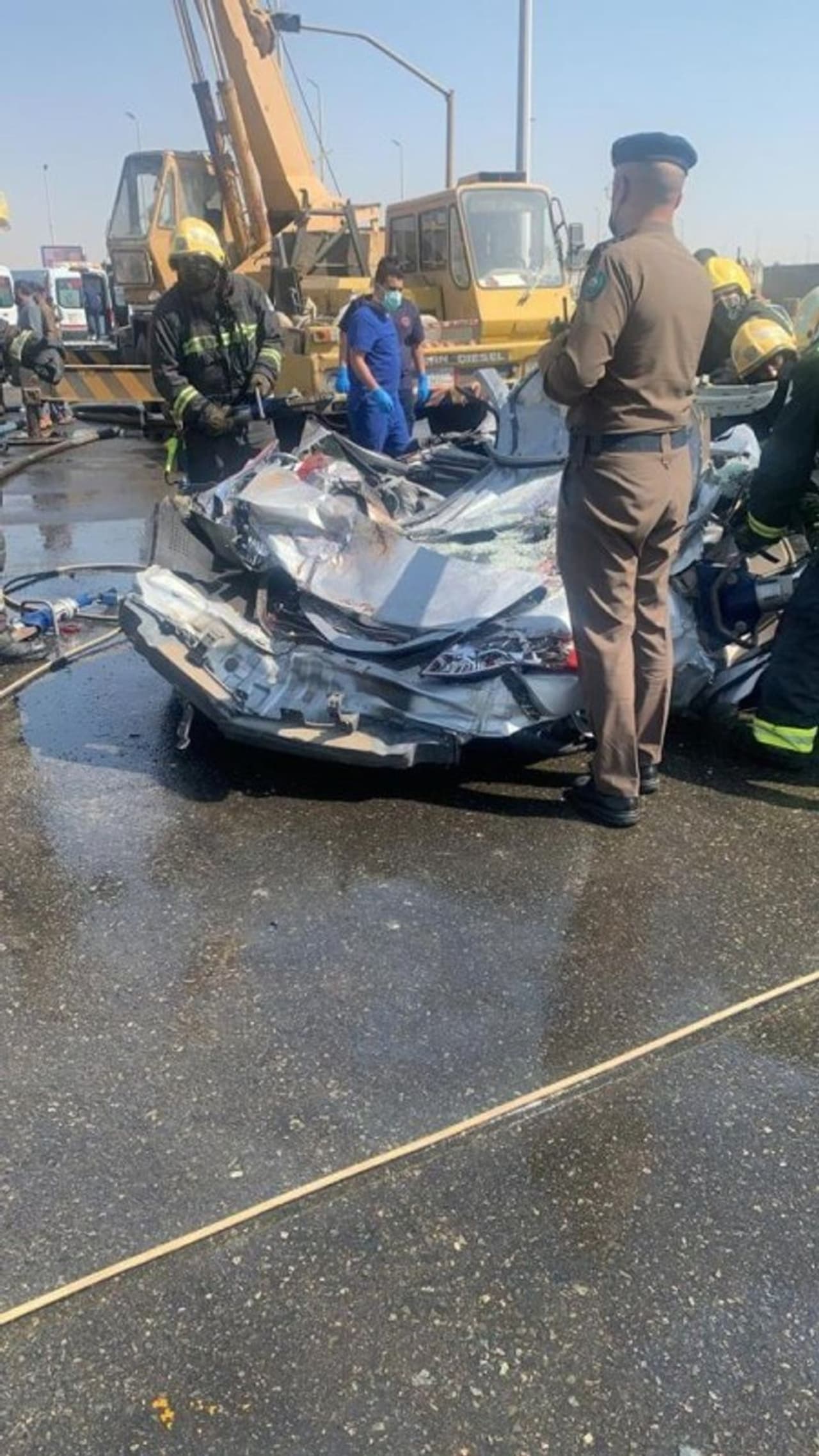 അപകടത്തില് തകര്ന്ന വാഹനങ്ങളില് കുടുങ്ങിയവരെ സിവില് ഡിഫന്സ് എത്തിയാണ് പുറത്തെടുത്തത്. ഒരു വാഹനം പൂര്ണമായും രണ്ട് വാഹനങ്ങള് ഭാഗികമായും തകര്ന്നു.