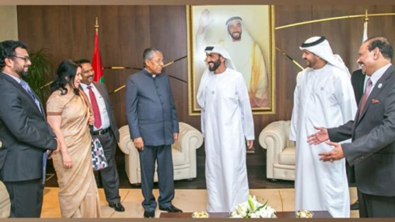 യുഎഇ ഭരണാധികാരികളുമായി കൂടിക്കാഴ്ച പാടില്ലെന്ന കേന്ദ്ര സര്ക്കാരിന്റെ കര്ശന നിര്ദ്ദേശമിരിക്കെ മുഖ്യമന്ത്രിയുടെ സ്വീകരണചടങ്ങിലേക്കെത്തിയ ഷെയ്ഖ് നഹ്യാന് ബിന് മുബാറക് അല് നഹ്യാനെ കൈയ്യടികളോടെയാണ് പ്രവാസി മലയാളികള് സ്വീകരിച്ചത്. യുഎഇയുടെ വളര്ച്ചയില് മലയാളികളുടെ സംഭാവന വലുതാണ് അതുകൊണ്ട് തന്നെ കേരള ജനത ജീവിക്കുന്നത് തങ്ങളുടെ ഹൃദയത്തിലാണെന്ന് ഷെയ്ഖ് നഹ്യാന് ഉദ്ഘാടന പ്രസംഗത്തില് പറഞ്ഞു. പ്രളയം തകര്ത്ത കേരളത്തിന് എന്തു സഹായവും ചെയ്യാന് യുഎഇ ഒരുക്കമാണ്.