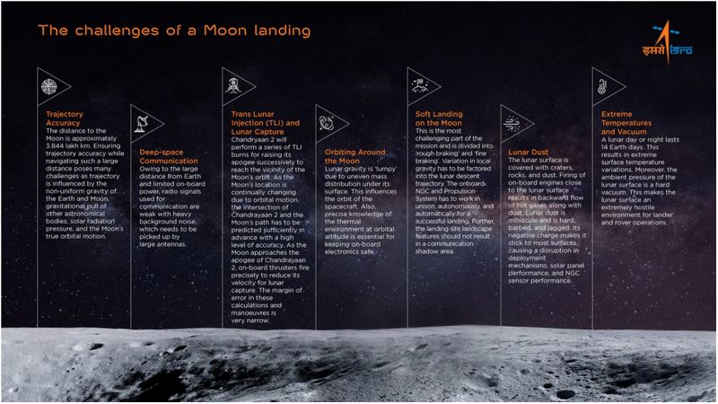 ഇതു വരെ ഒരു ചന്ദ്ര ദൗത്യവും കടന്നു ചെല്ലാത്ത ചന്ദ്രന്റെ ദക്ഷിണധ്രുവത്തിലേക്കാണ് ചന്ദ്രയാൻ രണ്ട് ഇറങ്ങാൻ പോകുന്നത്. ദക്ഷിണ ധ്രുവത്തിൽ കൂടുതൽ വെള്ളത്തിന്റെ സാന്നിധ്യം പ്രതീക്ഷിക്കുന്നതിനാലാണ് ഇവിടേക്ക് തന്നെ പേടകത്തെ അയക്കുന്നത്. ചന്ദ്രോപരിതലത്തിൽ ലാൻഡറിനെയും റോവറിനെയും സുരക്ഷിതമായി ഇറക്കുകയെന്നത് ഐഎസ്ആർഒ ഇതു വരെ ചെയ്തിട്ടുള്ളതിൽ വച്ച് എറ്റവും ബുദ്ധിമുട്ടേറിയ ദൗത്യമാണ്. ഡോ കെ ശിവന്റെ തന്നെ വാക്കുകളിൽ പറഞ്ഞാൽ ചന്ദ്രന്റെ ഉപരിതലത്തിലേക്ക് വിക്രം ലാൻഡറും റോവറും ഇറങ്ങുന്ന പതിനഞ്ചി മിനുട്ടുകൾ എല്ലാ അർത്ഥത്തിലും പേടിപ്പിക്കുന്നതായിരിക്കും.