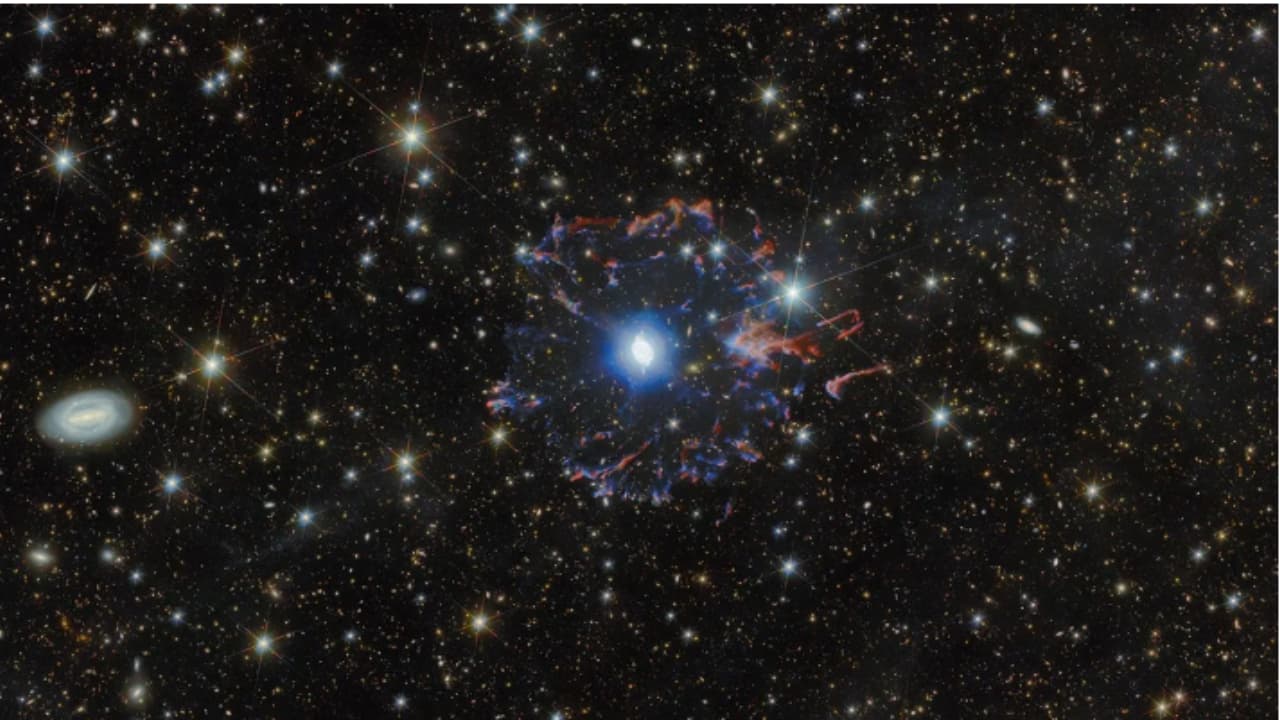 നാസയുടെ ഹബിൾ, യൂറോപ്യൻ ഏജൻസിയുടെ യൂക്ലിഡ് ദൂരദർശിനികൾ ചേർന്ന് 'ക്യാറ്റ്സ് ഐ നെബുല'യുടെ പുതിയ സംയുക്ത ചിത്രം പുറത്തുവിട്ടു. ഈ നിരീക്ഷണം, അന്ത്യത്തോടടുക്കുന്ന ഒരു നക്ഷത്രത്തിന്റെ സങ്കീർണ്ണ ഘടനയും സ്ഫോടനങ്ങളുടെ അടയാളങ്ങളും വെളിപ്പെടുത്തുന്നു.