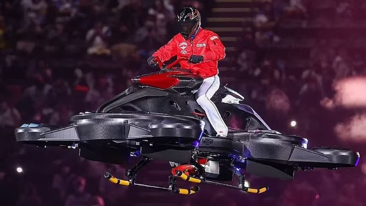 ഈ അപൂര്വ്വ വാഹനത്തിന് എക്സ്ടൂറിസ്മോ എന്നാണ് പേര്. ഇതിന് 40 മിനിറ്റ് വരെ 60 മൈല് വേഗതയില് സഞ്ചരിക്കാനാവുമത്രേ. ഹോക്കൈഡോ നിപ്പോണ് ഹാം ഫൈറ്റേഴ്സിന്റെ പുതിയ മാനേജരായ സുയോഷി ഷിന്ജോയാണ് ജപ്പാനിലെ ഹോക്കൈഡോയിലെ സപ്പോറോ ഡോമിലേക്ക് ഫ്യൂച്ചറിസ്റ്റിക് എക്സ്ടൂറിസ്മോയില് പറന്നുവന്നത്. മോട്ടോര് സൈക്കിളും ഡ്രോണും പറന്നുയരുന്ന വിമാനവും തമ്മിലുള്ള ക്രോസ് എന്നാണ് ഈ വാഹനത്തെ വിശേഷിപ്പിക്കുന്നത്.