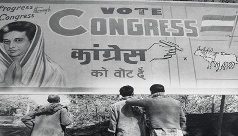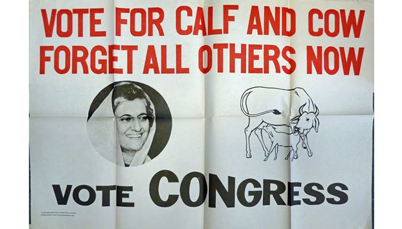 കോൺഗ്രസ്സ് ആദ്യമായി മത്സരിച്ചത് കൈപ്പത്തി ചിഹ്നത്തിലായിരുന്നില്ല. ഇന്ത്യ വ്യാവസായികമായി പച്ച പിടിക്കും മുമ്പുള്ള തെരഞ്ഞെടുപ്പാണല്ലോ. കൃഷി തന്നെ അന്നത്തെ പ്രധാന ഉപജീവനം. കാർഷികപുരോഗതിയുടെ ചിഹ്നമായ 'പൂട്ടിയ കാള'യിൽ മത്സരിച്ച് കോൺഗ്രസ്സ് പാതി വോട്ടുകളും നേടി. നെഹ്രുവിന്റെ കാലവും, ശാസ്ത്രിയുടെ അകാലമൃത്യുവും കഴിഞ്ഞ്, ഇന്ദിരയും കുറേക്കാലം കൂടി ഇതേ ചിഹ്നത്തിന്റെ പ്രൗഢി മുന്നോട്ടു കൊണ്ടുപോയി.