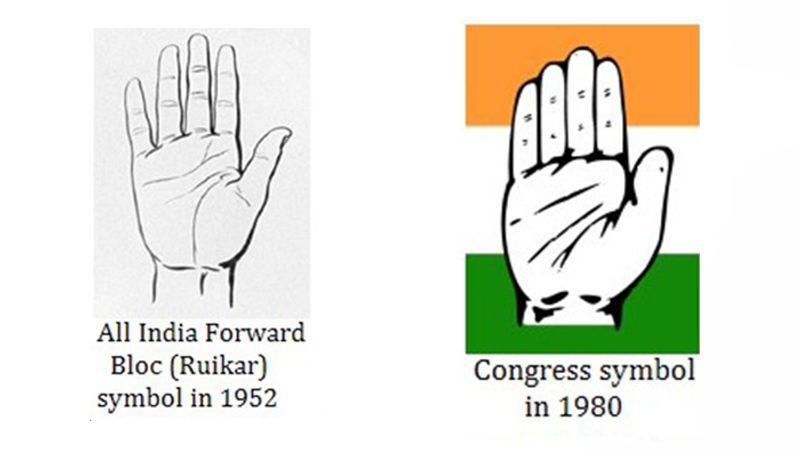 1952-ലെ തെരഞ്ഞെടുപ്പിൽ സമാനമായ ഒരു കൈപ്പത്തി ചിഹ്നത്തിലാണ് ഓൾ ഇന്ത്യ ഫോർവേഡ് ബ്ലോക്ക് മത്സരിച്ചത്. എന്നാൽ ആ തെരഞ്ഞെടുപ്പോടെ തന്നെ പാർട്ടി ശിഥിലമാവുകയും തുടർന്നുള്ള തെരഞ്ഞെടുപ്പുകളിൽ മത്സരിക്കാതെ വരികയും ചെയ്തു. അങ്ങനെ മൂന്നുപതിറ്റാണ്ടോളം ഉപയോഗിക്കാതെ കിടന്ന ആ ചിഹ്നം പിന്നീട് കോൺഗ്രസ്സിന്റെ പേരിൽ ബാലറ്റിലും ചുവരുകളും വന്നതോടെ കൂടുതൽ ജനകീയമാവുകയായിരുന്നു.