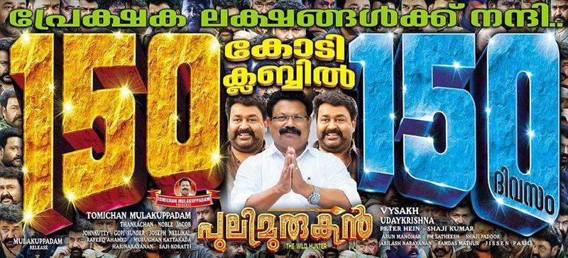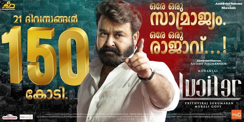 എന്നാല് 100 കോടിയില് കളക്ഷന് അവസാനിപ്പിച്ചിരുന്നില്ല പുലിമുരുകന്. 150 കോടി നേട്ടമെന്ന കണക്കും നിര്മ്മാതാവ് പിന്നീടുള്ള ആഴ്ചകളില് പുറത്തുവിട്ടു. ഇപ്പോഴിതാ മറ്റൊരു 150 കോടി ചിത്രവും മലയാളത്തിന് ലഭിച്ചിരിക്കുന്നു. പൃഥ്വിരാജ് സംവിധായകനായി അരങ്ങേറ്റം കുറിച്ച 'ലൂസിഫര്'. തിരക്കഥാകൃത്തുക്കളും സംവിധായകരും ഛായാഗ്രാഹകരുമൊക്കെ രണ്ട് ചിത്രങ്ങളിലും വെവ്വേറെ ആളുകള്. രണ്ട് ചിത്രങ്ങളിലും പൊതുവായുള്ള ഒരേയൊരു ഘടകം- മോഹന്ലാല്..