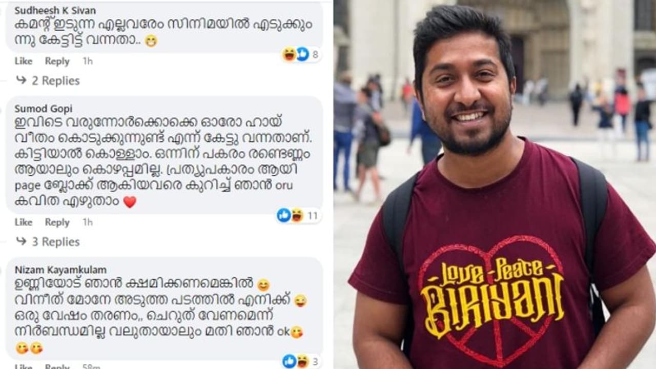 ഗായകനായി മലയാള സിനിമയിൽ അരങ്ങേറ്റം കുറിച്ച ആളാണ് വിനീത് ശ്രീനിവാസൻ. മനോഹരവും വേറിട്ടതുമായ ശബ്ദം കൊണ്ട് ശ്രദ്ധനേടിയ വിനീത് ഇന്ന് മലയാള സിനിമയിലെ മുൻനിര നായകനും സംവിധായകനുമാണ്. വളരെ ചുരുങ്ങിയ കാലംകൊണ്ട് തന്നെ വിനീത് സമ്മാനിച്ചത് ഒരുപിടി മികച്ച കഥാപാത്രങ്ങളും സിനിമകളുമാണ്. 'മുകുന്ദൻ ഉണ്ണി അസോസിയേറ്റ്സ്' എന്ന ചിത്രമാണ് വിനീതിന്റേതായി റിലീസിനൊരുങ്ങുന്ന പുതിയ ചിത്രം. ഈ അവസരത്തിൽ ചിത്രത്തിന്റെ പ്രമോഷൻ പോസ്റ്റിന് താഴെ വന്ന കമന്റും അതിന് വിനീത് നൽകിയ മറുപടിയുമാണ് ശ്രദ്ധനേടുന്നത്.