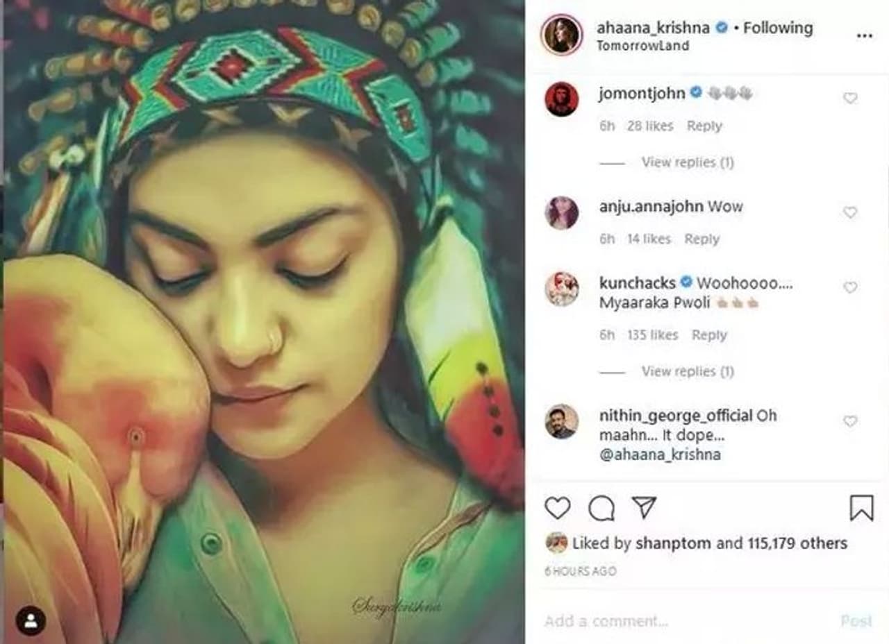 അഹാനയുടെ ചിത്രങ്ങളും വിശേഷങ്ങളും ആരാധകര് ഏറ്റെടുക്കാറുണ്ടെങ്കിലും പുതിയ ചിത്രത്തിന് താരങ്ങളും പ്രതികരണവുമായി എത്തിയിട്ടുണ്ട്.