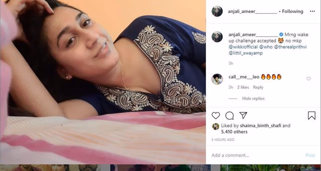 ലോക്ഡൗണ് കാലത്ത് താരങ്ങളെല്ലാം വീട്ടില് തന്നെയാണ്. ചിത്രങ്ങളും വീഡിയോയും ഡാന്സും പാട്ടുമൊക്കെയായി സോഷ്യല് മീഡിയയില് സജീവമാണ് താരങ്ങളെല്ലാം. ഇപ്പോഴിതാ അഞ്ജലി അമീറും ഒരു ചിത്രം പങ്കുവച്ചിരിക്കുകയാണ്. രാവിലെ എഴുന്നേല്ക്കുമ്പോള് മേക്കപ്പ് ഒന്നും ഇല്ലാതെ എങ്ങനെയുണ്ടാകുമെന്ന കുറിപ്പോടെ ഇന്സ്റ്റഗ്രാമില്പങ്കുവച്ച കുറിപ്പും ചിത്രവും ഏറ്റെടുത്തിരിക്കുകയാണ് ആരാധകര്.