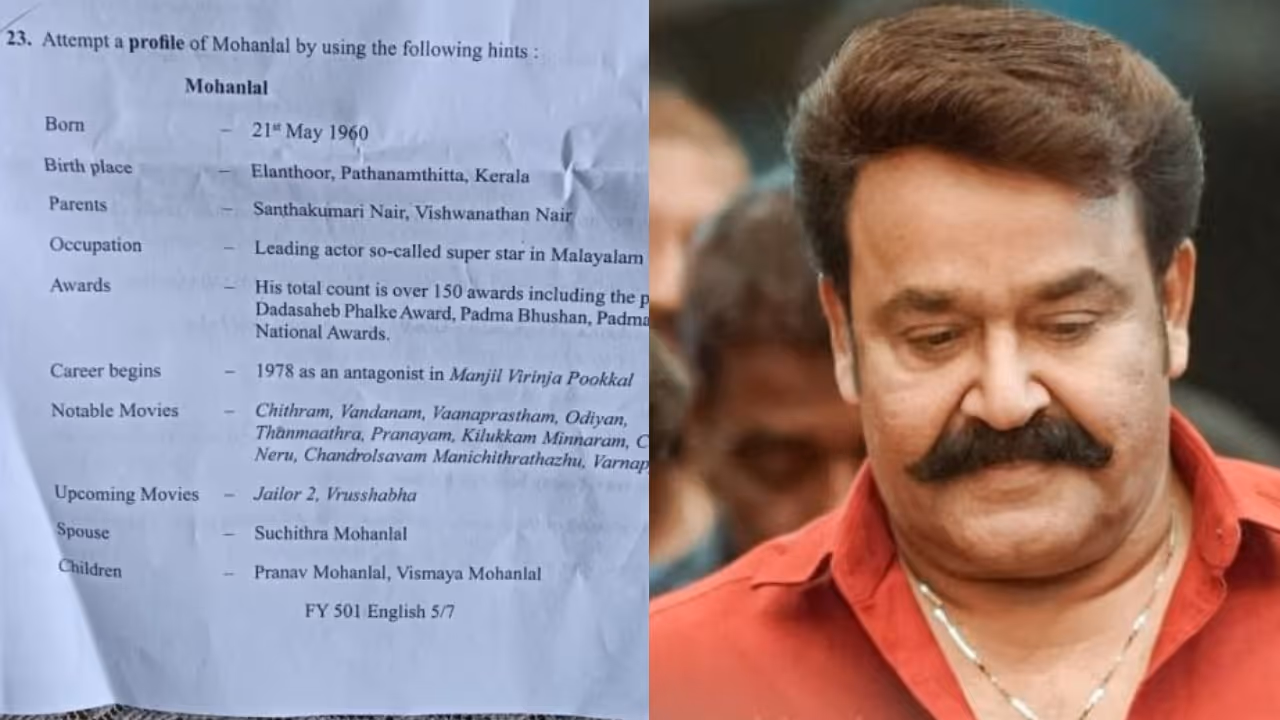 ഈ വർഷത്തെ ഹയർസെക്കൻഡറി ഒന്നാം വർഷ ഇംഗ്ലീഷ് പരീക്ഷയിൽ, പ്രശസ്ത നടൻ മോഹൻലാലിനെക്കുറിച്ച് ഒരു ചോദ്യം ഉൾപ്പെട്ടത് ഏറെ ശ്രദ്ധ നേടി. ചോദ്യപേപ്പറിന്റെ ചിത്രങ്ങൾ സാമൂഹിക മാധ്യമങ്ങളിൽ വ്യാപകമായി പ്രചരിക്കുകയാണ്.