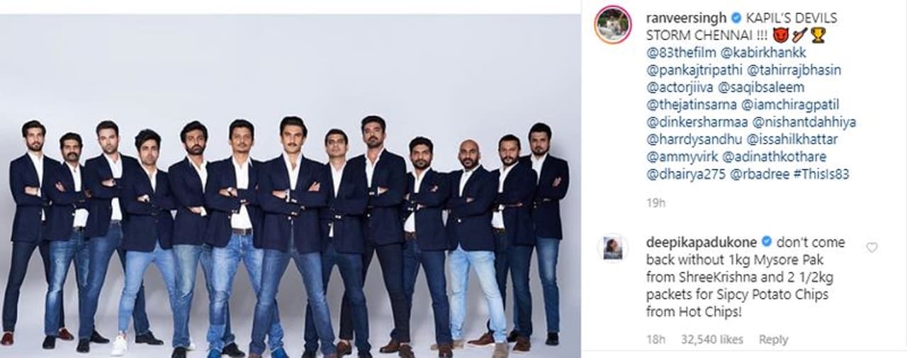 ചിത്രത്തിന്റെ പ്രെമോഷന്റെ ഭാഗമായി മോഷൻ പോസ്റ്റർ റിലീസ് ചെയ്യുന്നതിനായി എത്തിയ താരങ്ങൾക്കൊപ്പം ഇൻസ്റ്റഗ്രാമിൽ പങ്കുവച്ച രൺവീറിന്റെ ചിത്രത്തിന് താഴെയായിട്ടായിരുന്നു ദീപികയുടെ കമന്റ്. നിരവധി പേരാണ് ദീപികയുടെ കമന്റിന് ലൈക്കടിച്ചിരിക്കുന്നത്. 'ടിപ്പിക്കൽ സൗത്ത് ഇന്ത്യൻ ഭാര്യ തന്നെ', 'ഇതാണ് യഥാർത്ഥ ഭാര്യ', തുടങ്ങിയ നിരവധി കമന്റുകളാണ് ദീപികയ്ക്ക് ലഭിക്കുന്നത്. ശ്രീകൃഷ്ണയിലെ മൈസൂർ പാക്കിനെയും പ്രശംസിച്ച് നിരവധി പേർ രംഗത്തെത്തിയിട്ടുണ്ട്.