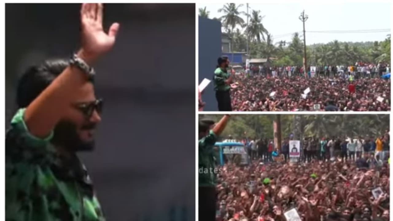 കൊണ്ടോട്ടി: മലപ്പുറം കൊണ്ടോട്ടിയിൽ ഉദ്ഘാടനത്തിന് എത്തിയ നടന് ദുല്ഖര് സല്മാനെ കാണാന് ഇരച്ചെത്തി ജനം. ഇതിന്റെ വീഡിയോ സോഷ്യല് മീഡിയയില് വൈറലാകുകയാണ്. ദുൽഖർ സ്റ്റേജിൽ എത്തിയപ്പോൾ ആര്ത്തിരമ്പുന്ന ജനത്തിന്റെ ചിത്രങ്ങളും വീഡിയോകളും വിവിധ സിനിമ പേജുകളില് വൈറലാണ്. 'സുന്ദരി പെണ്ണെ' എന്ന ഗാനം ദുല്ഖര് വേദിയില് ആലപിക്കുകയും ചുവടുവയ്ക്കുകയും ചെയ്തു.