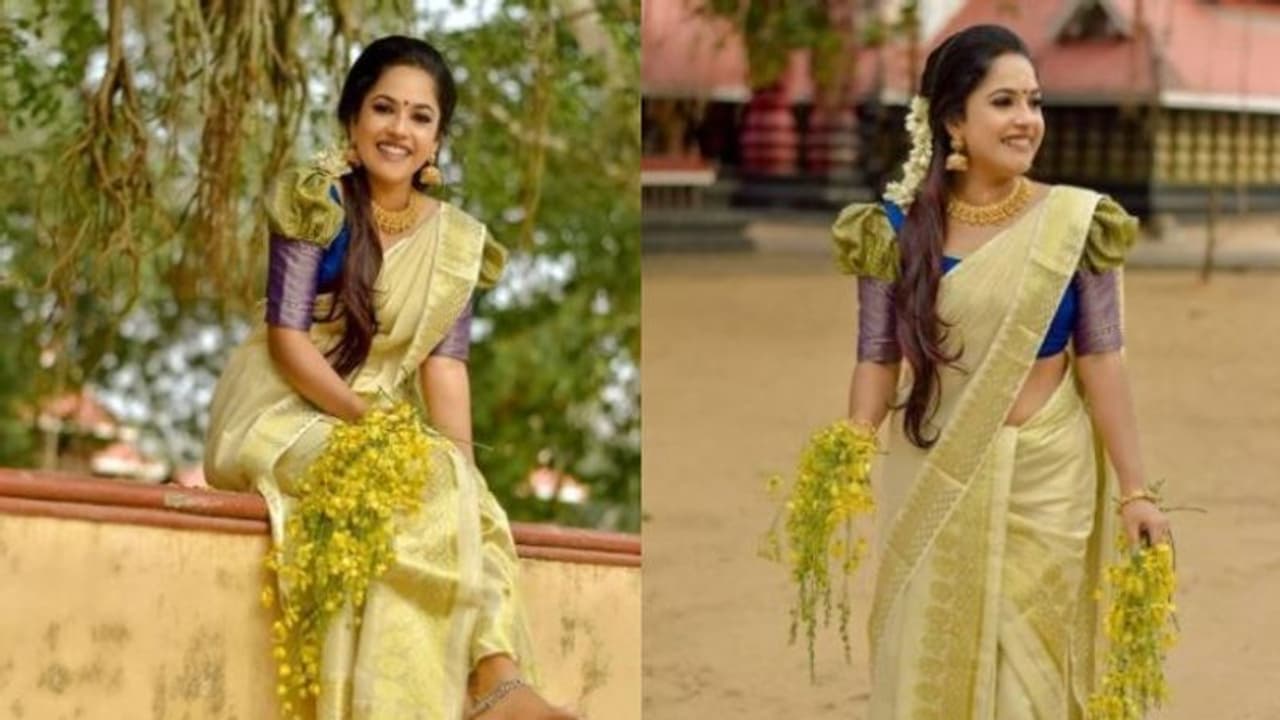 ചിറയന്കീഴിലെ ശര്ക്കരദേവി ക്ഷേത്രത്തില് നിന്നുള്ള ചിത്രങ്ങളാണ് അമൃത പങ്കുവച്ചിരിക്കുന്നത്. ഗോള്ഡന് പഫ് വച്ച കരിനീല ബൗസിനൊപ്പം സില്ക് സെറ്റ് സാരിയുടുത്താണ് അമൃത ചിത്രത്തിലുള്ളത്. ഇരുകയ്യിലും കണിക്കൊന്നയുമായി നിറഞ്ഞ ചിരികളോടെ നില്ക്കുന്ന അമൃതയുടെ ചിത്രങ്ങള്ക്ക് മികച്ച പ്രതികരണമാണ് ആരാധകര് നല്കുന്നത്. കണി കണ്ട സുഖമെന്നാണ് ചില കമന്റുകള്. മനസ്സില് നിറയെ കണിക്കൊന്നകള് വിരിയിച്ചുകൊണ്ട് വീണ്ടും വിഷു വരവായെന്ന് പറഞ്ഞാണ് അമൃത ചിത്രങ്ങള് പങ്കുവച്ചിരിക്കുന്നത്.