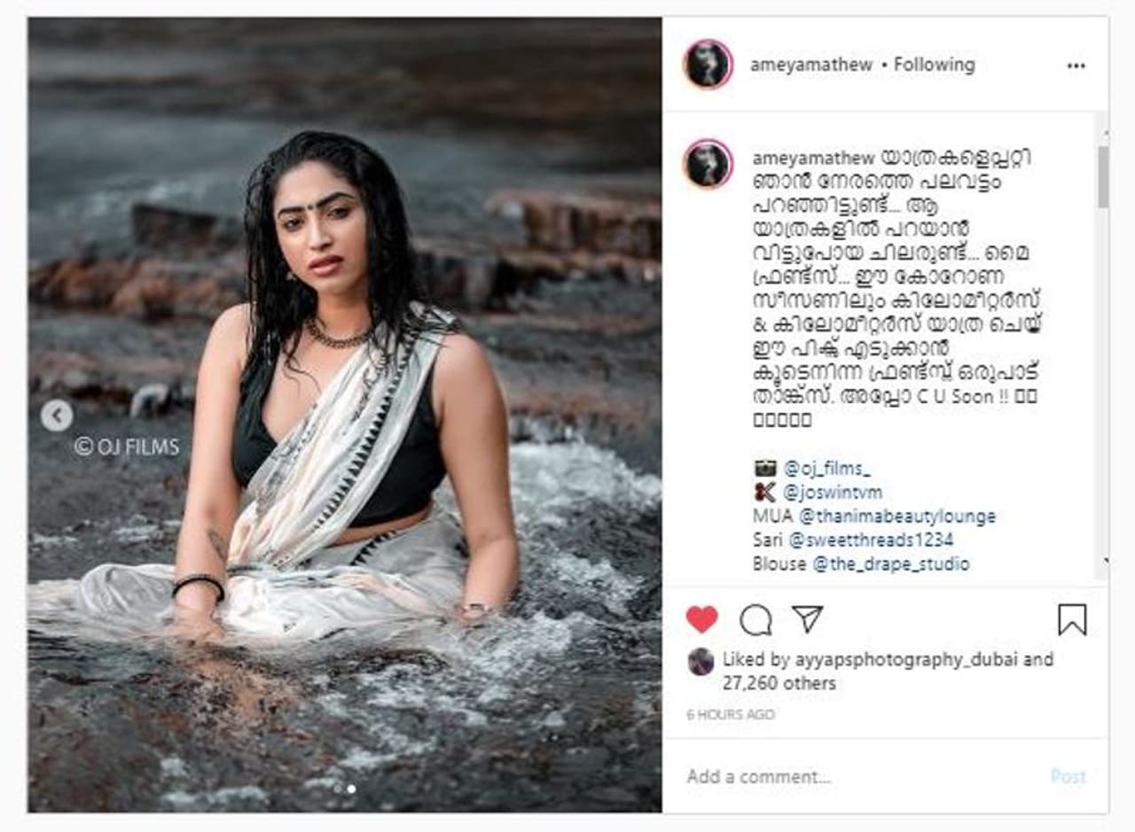 അമേയ മാത്യു എന്ന പേര് ഇപ്പോള് മലയാളികള്ക്ക് സുപരിചിതമാണ്. ഇതിനോടകം നിരവധി ചിത്രങ്ങളിലും വെബ് സീരീസുകളിലൂടെയും പരിചിതമായ മുഖമാണ് അമേയയുടേത്. സോഷ്യല്മീഡിയയില് സജീവമായ അമേയ, സോഷ്യല്മീഡിയയിലെ നിലപാടുകള്കൊണ്ടും മറ്റും സോഷ്യല്മീഡിയയിലും ഒരുകൂട്ടം ആരാധകരെ സൃഷ്ടിച്ചുകഴിഞ്ഞു. ലോകത്തും രാജ്യത്തുമൊന്നാകെയുള്ള കൊറോണ ലോക്ക്ഡൗണിന്റെ പശ്ചാത്തലത്തില് യാത്ര പോകാന് കഴിയാത്ത വിഷമം അമേയ പങ്കുവച്ചത് അടുത്തിടെ സോഷ്യല്മീഡിയ ഏറ്റെടുത്തിരുന്നു.