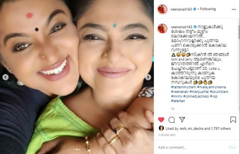മലയാളികള് നെഞ്ചേറ്റിയ പരമ്പരകളിലൊന്നാണ് 'തട്ടീം മുട്ടീം'. പരമ്പര പോലെ തന്നെ അതിലെ കഥാപാത്രങ്ങളും അവരെ അവതരിപ്പിക്കുന്ന താരങ്ങളും പ്രേക്ഷകര്ക്ക് പ്രിയങ്കരരാണ്. അര്ജുന്- മോഹനവല്ലി ദമ്പതികളുടെ ജീവിതത്തെ ചുറ്റിപ്പറ്റിയാണ് തട്ടീം മുട്ടീം എന്ന പരമ്പര മുന്നോട്ടുപോകുന്നത്. ഒരു കുടുംബത്തില് നടക്കുന്ന കാര്യങ്ങളെല്ലാംതന്നെ ഹാസ്യത്തിന്റെ മേമ്പൊടിയോടെ പറയുന്ന പരമ്പരയിലെ പ്രേക്ഷകരുടെ പ്രിയപ്പെട്ട കഥാപാത്രങ്ങളാണ് മോഹനവല്ലിയും കോകിലയും. പരമ്പരയിലെ നാത്തൂന്മാരായെത്തുന്ന ഇരുവരും കുറച്ചൊന്നുമല്ല പ്രേക്ഷകരെ കയ്യിലെടുക്കാറുള്ളത്. മോഹനവല്ലിയായി മഞ്ജു പിള്ളയും, കോകിലയായി വീണാ നായരുമാണ് എത്താറുള്ളത്.