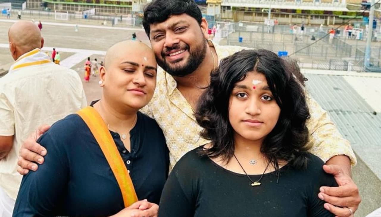 "മൊട്ടൈ ബോസ് ലക്ഷ്മി. എന്റെ Bells Palsy പോരാട്ട ദിനങ്ങൾ നിങ്ങളിൽ കുറെ പേർക്കെങ്കിലും അറിയാം എന്ന് തോന്നുന്നു . അന്ന് നിങ്ങൾ ഓരോരുത്തരുടെയും പ്രാർത്ഥന കൊണ്ട് തന്നെ ആണ് ഇന്ന് കാണുന്ന രൂപത്തിൽ തിരികെ എത്താൻ കഴിഞ്ഞത്. പക്ഷെ എന്റെ ഭാര്യ ഒരു ലെവൽ കൂടുതൽ പ്രാർത്ഥിച്ചിരുന്നു; ആ അസുഖം മാറാൻ ഭാര്യ നേർന്നതാണ് തിരുപ്പതിയിൽ മുടി കൊടുക്കാം എന്ന്. അങ്ങനെ ചിഞ്ചുകുട്ടി മൊട്ട കുട്ടി ആയി", എന്നാണ് ചിത്രങ്ങൾ പങ്കുവച്ച് മിഥുൻ കുറിച്ചത്.