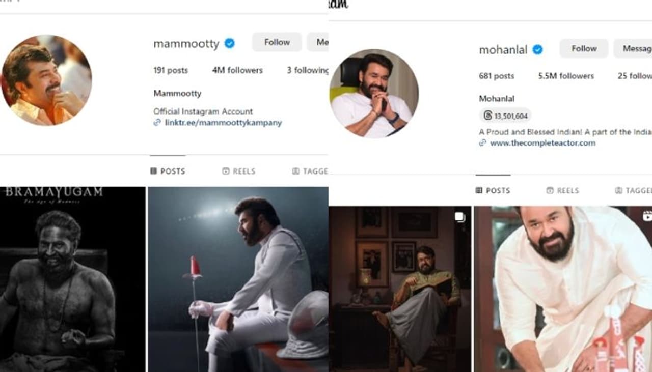 ഇൻസ്റ്റാഗ്രാമിൽ നാല് മില്യൺ ഫോളോവേഴ്സ് ആണ് മമ്മൂട്ടിക്ക് ഉള്ളത്. 5.5 മില്യൺ പേരാണ് മോഹൻലാലിനെ ഇൻസ്റ്റയിൽ ഫോളോ ചെയ്തിരിക്കുന്നത്. കുറച്ച് ദിവസത്തിനുള്ളിൽ തന്നെ നയൻസ് മോഹൻലാലിനെ കടത്തി വെട്ടുമെന്ന് ഏതാണ്ട് ഉറപ്പായി കഴിഞ്ഞു.