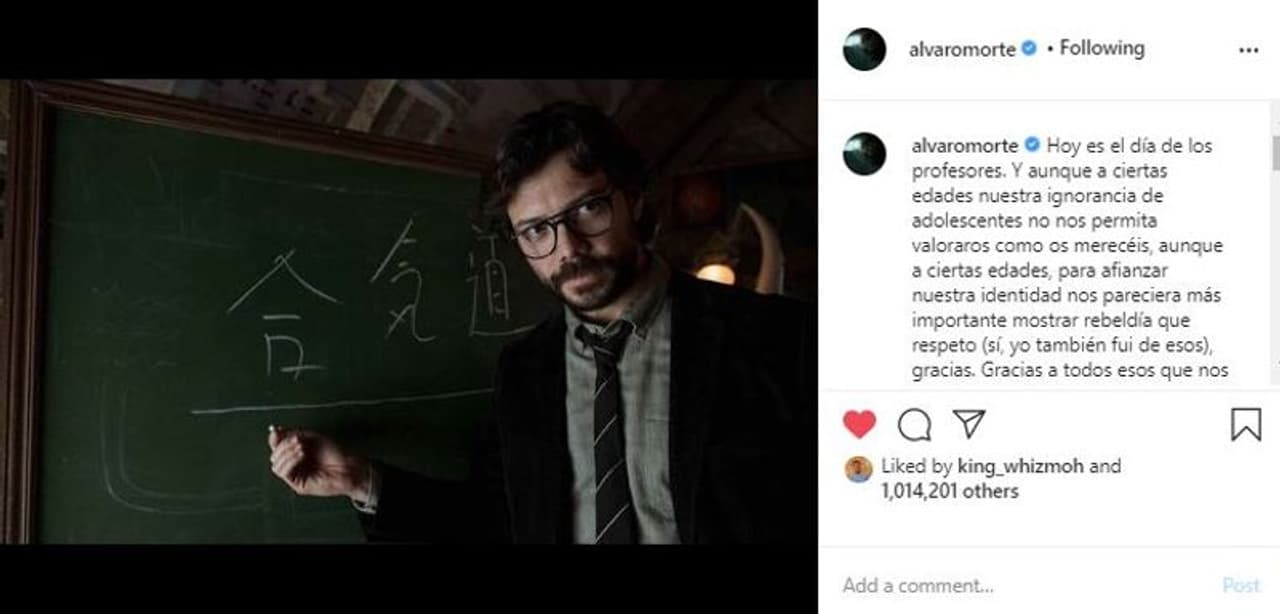 നെറ്റ്ഫ്ളിക്സില് മികച്ച പ്രതികരണവുമായി മുന്നേറുന്ന പരമ്പരയാണ് മണി ഹെയ്സ്റ്റ്. സീരീസിന്റെ നാലാം സീസണ് പുറത്തിറങ്ങിയത് ലോക്ക് ഡൗണ് ആരംഭിച്ചതിന് ശേഷമായിരുന്നു. ഒടിടി സിരീസുകള് കാണുന്ന മലയാളികള്ക്കിടയിലും ഏറെ ജനപ്രിയമാണ് ഈ പരമ്പര. ഒരു ജനപ്രിയ മലയാള ചിത്രത്തിലെ കഥാപാത്രങ്ങളെക്കാളും ആരാധകരുണ്ടാവും കേരളത്തില് മണി ഹെയ്സ്റ്റ് കഥാപാത്രങ്ങള്ക്കെന്ന് പറഞ്ഞാല് അത്ര അതിശയോക്തി ആവില്ല. പരമ്പരയില് ഏറ്റവും കൂടുതല് ആരാധകരുള്ള കഥാപാത്രം ഏതെന്ന ചോദ്യത്തിന് ലോകമെങ്ങുമുള്ള ആരാധകര്ക്ക് ഒരൊറ്റ ഉത്തമേയുണ്ടാവൂ. അത് 'പ്രൊഫസര്' എന്നാണ്. പരമ്പരയിലെ മാസ്റ്റര് മൈന്ഡ് ആയ പ്രൊഫസറെ അവതരിപ്പിക്കുന്നത് അല്വരോ മോര്ത്തെ എന്ന സ്പാനിഷ് നടനാണ്. സോഷ്യല് മീഡിയയില് സജീവമായ അല്വരോ സ്പാനിഷ് അധ്യാപകദിനമായിരുന്ന 27ന് ഒരു ഇന്സ്റ്റഗ്രാം സന്ദേശം പങ്കുവച്ചിരുന്നു. അതിനു താഴെയും എപ്പോഴത്തെയും പോലെ അടുത്ത സീസണ് എപ്പോഴെന്നായിരുന്നു ആരാധകര്ക്ക് അറിയാനുണ്ടായിരുന്നത്.