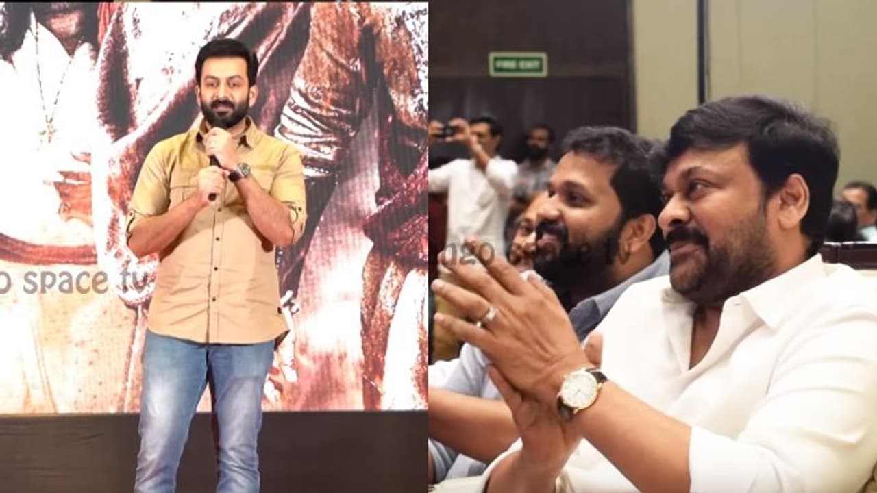'ഈ സിനിമയുടെ ടീസര് കാണുമ്പോള് എനിക്ക് ഭയങ്കര വിഷമം തോന്നുന്നുണ്ട്. കാരണം ചിരഞ്ജീവി സാര് ഈ സിനിമയില് ഒരു വേഷം അഭിനയിക്കാന് എന്നെ വിളിച്ചിരുന്നതാണ്. നിര്ഭാഗ്യവശാല് മറ്റ് സിനിമകളുടെ തിരക്കുകളാല് അതിന് സാധിച്ചില്ല. പക്ഷേ ഇന്ന് ഇത് കാണുമ്പോള് ഞാന് എന്റെതന്നെ നെഞ്ചത്തടിച്ച് പോവുകയാണ്. കാരണം ഇത്തരമൊരു പ്രോഡക്ടില് ഒരു ഷോട്ടിലെങ്കിലും അഭിനയിക്കാന് പറ്റിയിരുന്നെങ്കിലെന്ന് ആഗ്രഹിച്ച് പോവുകയാണ്', പൃഥ്വിരാജ് പറഞ്ഞു.