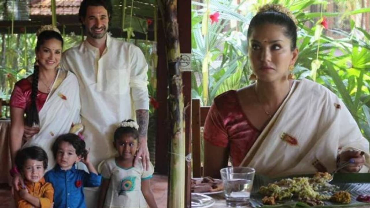 പിങ്ക് ബ്ലൗസും കേരള സാരിയും അണിഞ്ഞാണ് സണ്ണി ചിത്രങ്ങളിലുള്ളത്. ഭർത്താവ് ഡാനിയേലും രണ്ട് ആൺമക്കളും ജുബ്ബയും മുണ്ടുമാണ്. മകൾ നിഷ പട്ടുപാവാട അണിഞ്ഞിരിക്കുന്നു.