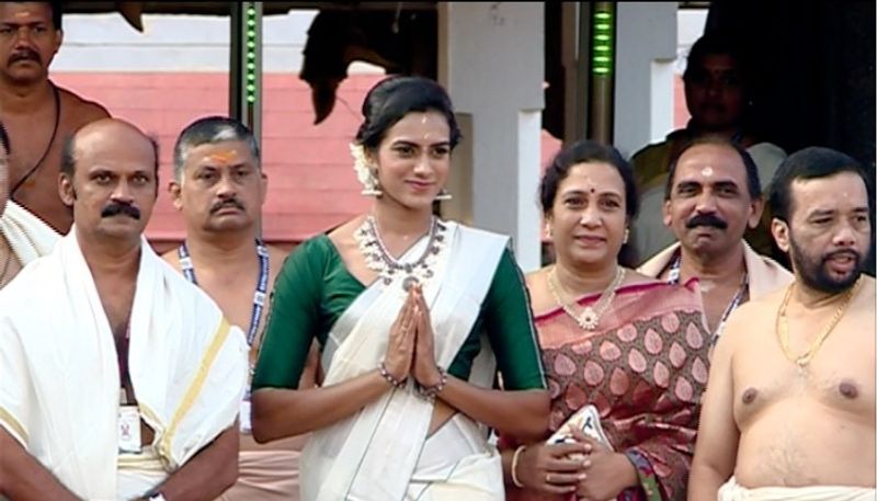 സംസ്ഥാനത്തിന്റെ ആദരമേറ്റുവാങ്ങാനെത്തിയ സിന്ധു കേരള സന്ദര്ശനത്തിന് തുടക്കമിട്ടത് ക്ഷേത്ര സന്ദര്ശനത്തോടെയാണ്. മുന് നിശ്ചയിച്ച പ്രകാരം പി വി സിന്ധു പദ്മനാഭസ്വാമി ക്ഷേത്രത്തിലും ആറ്റുകാല് ദേവീ ക്ഷേത്രത്തിലും ദർശനം നടത്തി. എന്നാല് ക്ഷേത്രപരിസരത്ത് സിന്ധുവിനെ കണ്ട ആരാധകര്ക്ക് വീണ്ടും ആ സംശയം ഉദിച്ചു. ഈ കുട്ടി മലയാളിയല്ലേ...തനത് കേരള സ്റ്റൈലില് തലയില് മുല്ലപ്പൂ ചാടി, സെറ്റ് സാരിയണിഞ്ഞ്, കൈകൂപ്പിയാണ് സിന്ധു ആരാധകര്ക്ക് മുന്നില് പ്രത്യക്ഷപ്പെട്ടത്.