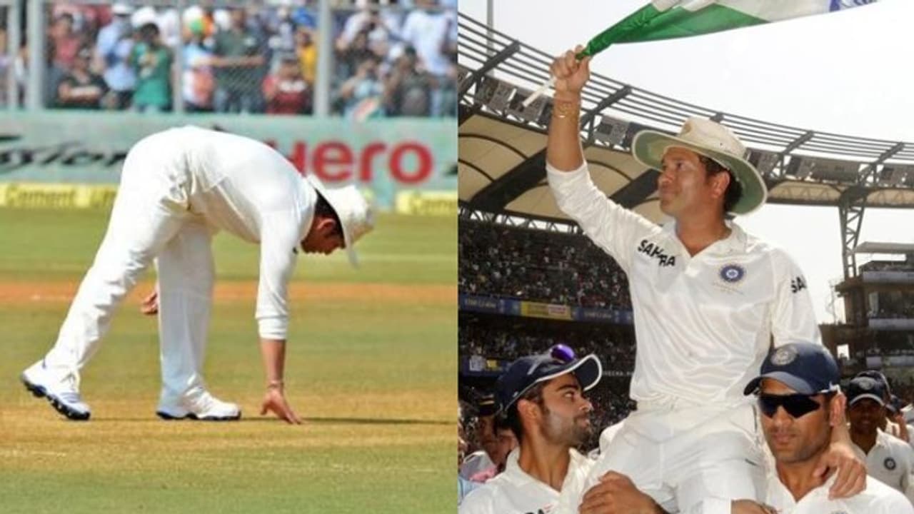 സച്ചിനെയും തോളിലെടുത്തുകൊണ്ട് സ്റ്റേഡിയം വലംവച്ചുള്ള ഇന്ത്യന് ടീമിന്റെ പ്രദക്ഷിണം അവസാനിച്ചു. എങ്കിലും സച്ചിന്റെ മനസില് ഒരു ചടങ്ങുകൂടി ബാക്കിയുണ്ടായിരുന്നു. ഏറ്റവും വൈകാരികമായ ചടങ്ങ്. എല്ലാവരും പവലിയനിലേക്കും ഗാലറിയിലേക്കും മടങ്ങുന്ന വേളയില് സച്ചിന് ഒരിക്കല്ക്കൂടി ക്രീസിന്റെ മധ്യത്തിലേക്കു വന്നു. സച്ചിന് മണ്ണില് ഇരുകൈകളും തൊട്ടു നെഞ്ചില്വച്ചു, അവസാനമായി. പിന്നീട് ആകാശത്തേക്കു നോക്കി. തലകുമ്പിട്ടു... നട്ടുച്ച സൂര്യന്റെ കിരണങ്ങള് സച്ചിന് ധരിച്ച തൊപ്പിയില് കുത്തി. ആ നിഴലില് മുഖം വ്യക്തമായിരുന്നില്ല. സച്ചിന് കരയുകയായിരുന്നു. തലകുനിച്ച് മടങ്ങുമ്പോള് കൈകള്കൊണ്ട് മുഖം തുടച്ചു. സച്ചിന് നടന്നു നീങ്ങി. അപ്പോള് സമയചക്രം ഒരു മണിയിലെത്തിയിരുന്നു. എങ്കിലും ഗാലറിയില് സച്ചിന്. സച്ചിന് വിളി അവസാനിച്ചിരുന്നില്ല, അത് പക്ഷേ, ആവേശംകൊണ്ടായിരുന്നില്ല, അക്ഷരാര്ഥത്തില് സച്ചിനെ വിളിച്ചു