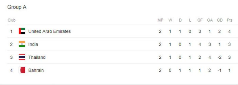 ഇന്ത്യ, ബഹ്റിനോട് തോല്ക്കുകയും യുഎഇ, തായ്ലന്ഡിനെ തോല്പ്പിക്കുകയും ചെയ്താലും മികച്ച മൂന്നാം സ്ഥാനക്കാരുടെ പരിഗണനവെച്ച് ഇന്ത്യക്ക് മുന്നേറാനുള്ള നേരിയ സാധ്യത അവശേഷിക്കുന്നുണ്ട്. ഇന്ത്യയെക്കാള് താഴ്ന്ന റാങ്കിലുള്ള ബഹ്റിനെ ഇന്ത്യ കീഴടക്കുമെന്നുതന്നെയാണ് ആരാധകരുടെ പ്രതീക്ഷ. ഒപ്പം ഇന്ത്യ 4-1ന് തകര്ത്തുവിട്ട തായ്ലന്ഡിന് യുഎഇ മുട്ടുകുത്തിക്കുമെന്നും ആരാധകര് കരുതുന്നു.