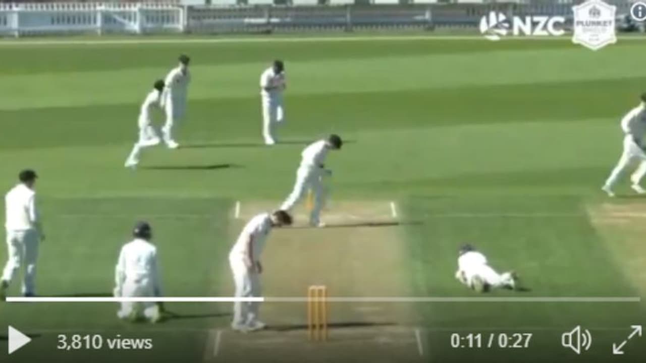 ഒട്ടാഗോയുടെ നഥാന് സ്മിത്തും മൈക്കല് റിപ്പണുമായിരുന്നു ക്രീസില്. 47-ാം ഓവറില് ഫൈന് ലെഗ്ഗിലേക്ക് റിപ്പണ് ഫ്ലിക്ക് ചെയ്ത പന്തില് രണ്ടാം റണ്ണിനായി ഓടിയതായിരുന്നു ഇരുവരും. അനായാസം രണ്ട് റണ്ണെടുക്കാമായിരുന്നെങ്കിലും ആദ്യ റണ് പൂര്ത്തിയാക്കി തിരിയുന്നതിനിടെ റിപ്പണ് ബൗളിംഗ് എന്ഡില് കാല് വഴുതി വീണു.