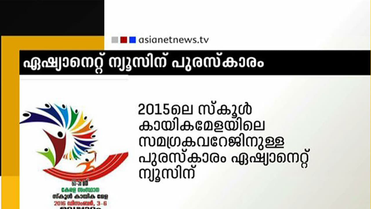 കഴിഞ്ഞ് അഞ്ചു വര്ഷത്തിനിടെ നാലാം തവണയാണ് ഏഷ്യാനെറ്റ് ന്യൂസിന് പുരസ്കാരം ലഭിക്കുന്നത്. സ്കൂള് കായികമേളയുടെ സമാപന ദിവസമായ ചൊവ്വാഴ്ച പുരസ്കാരം വിതരണം ചെയ്യും. മറ്റന്നാളാണ് സംസ്ഥാന സ്കൂൾ കായിക മേള തുടങ്ങുന്നത്.