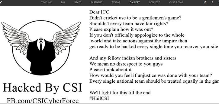 ഇന്ത്യന് ടീമിനോട് ദേഷ്യമൊന്നുമില്ലെങ്കിലും നിങ്ങള്ക്കാണ് ഇത് സംഭവിച്ചതെങ്കില് എങ്ങനെ ഉണ്ടാവുമായിരുന്നുവെന്നും സന്ദേശത്തില് ചോദിക്കുന്നു. ഐസിസി എല്ലാ രാജ്യങ്ങളെയും ഒരുപോലെ കാണണമെന്നും സന്ദേശത്തില് പറഞ്ഞിരുന്നു. വെബ്സൈറ്റ് ഇപ്പോള് പൂര്വസ്ഥിതിയിലാക്കിയിട്ടുണ്ട്.