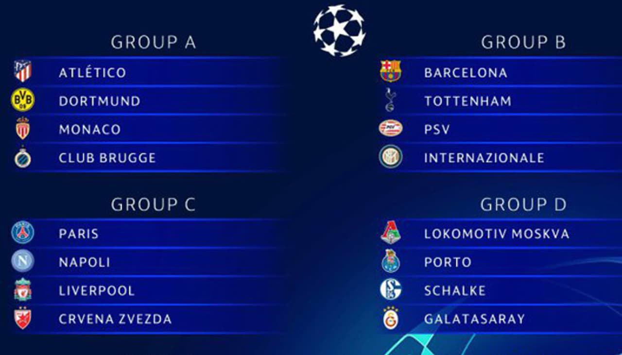 ഗ്രൂപ്പ് ബിയില് ബാഴ്സലോണയ്ക്കും ഇംഗ്ലീഷ് പ്രീമിയര് ലീഗിലെ ടോട്ടന്ഹാം, സീരി എയില് നിന്ന് ഇന്റര് മിലാന്, നെതര്ലന്ഡ്സില് നിന്നുള്ള പിഎസ്വി ഐന്തോവന് ടീമുകളെയാണ് നേരിടേണ്ടത്. കഴിഞ്ഞ തവണത്തെ ഫൈനലിസ്റ്റുകളായ ലിവര്പൂളും മരണ ഗ്രൂപ്പിലാണ്. ഫ്രഞ്ച് ചാമ്പ്യന്മാരായ പി.എസ്.ജി, ഇറ്റാലിയന് ടീമായ നാപോളി, റെഡ് സ്റ്റാര് ബെല്ഗ്രേഡ് എന്നിവരടങ്ങുന്ന ഗ്രൂപ്പിലാണ് ലിവര്പൂള്.