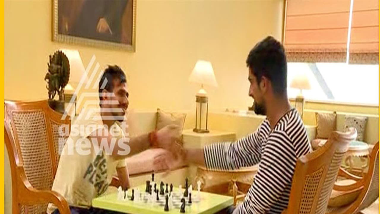 തിരുവനന്തപുരത്തേക്കുള്ള വിമാനയാത്രക്കിടെയാണ് സോധിക്കെതിരെ ചാഹല് ആദ്യം ചെസില് മത്സരിക്കുന്നത്. അത്തവണ രണ്ടിലും ചാഹല് തന്നെ ജയിച്ചു. മൂന്നില് പിഴയ്ക്കില്ലെന്ന് ഉറപ്പിച്ച സോധിയെ വീണ്ടും ചാഹലിന് മുന്നില് ഇരുത്തിയത് ട്വന്റി-20 പരമ്പരയുടെ സംപ്രേഷണാവകാശമുള്ള സ്റ്റാര് സ്പോര്ട്സ് ചാനല്. കറുത്ത കരുക്കളുമായി ചാഹല്. വെള്ളക്കരുക്കളില് സോധിയും.