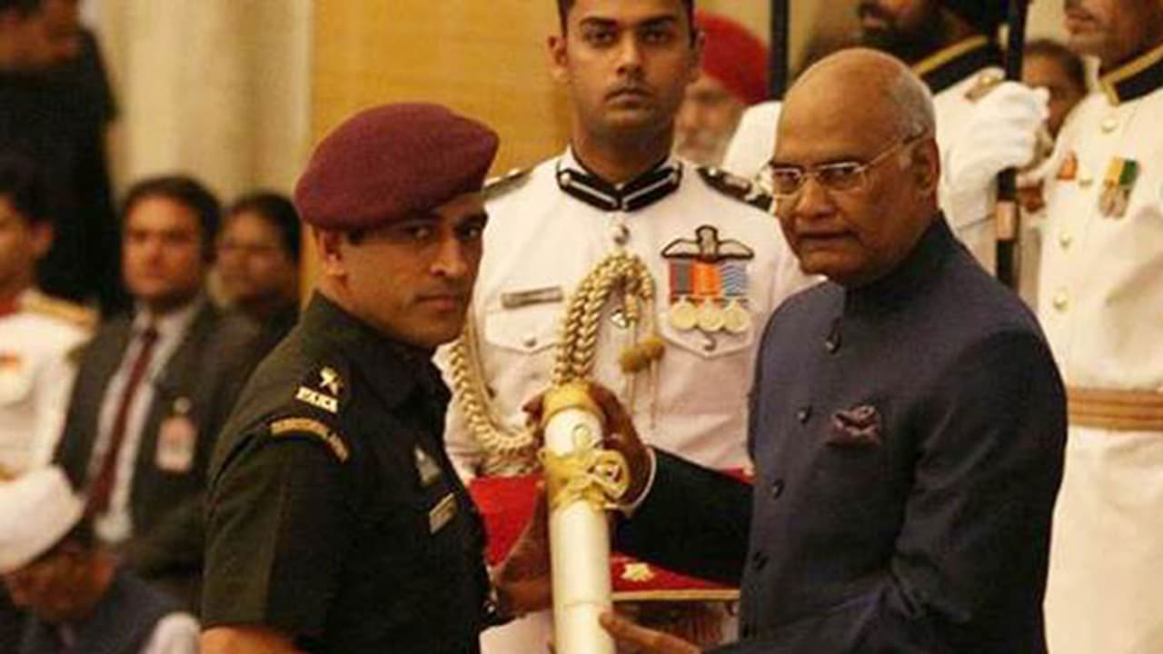 ടെറിട്ടോറിയല് ആര്മിയില് ലെഫ്റ്റനന്റ് കേണലാണ് ധോണി. അതിനാലാണ് ധോണി സൈനികവേഷത്തില് എത്തി അവാര്ഡ് സ്വീകരിച്ചത്. കപില് ദേവിനാണ് ഇതിനു മുമ്പ് ക്രിക്കറ്റ് ലോകത്ത് നിന്ന് പത്മഭൂഷണ് ലഭിച്ചിട്ടുള്ളത്. ബില്യാര്ഡ്സ് ലോക ചാമ്പ്യന് പങ്കജ് അദ്വാനിയും രാഷ്ട്രപതിയില് നിന്ന് പത്മഭൂഷണ് അവാര്ഡ് ഏറ്റുവാങ്ങി.