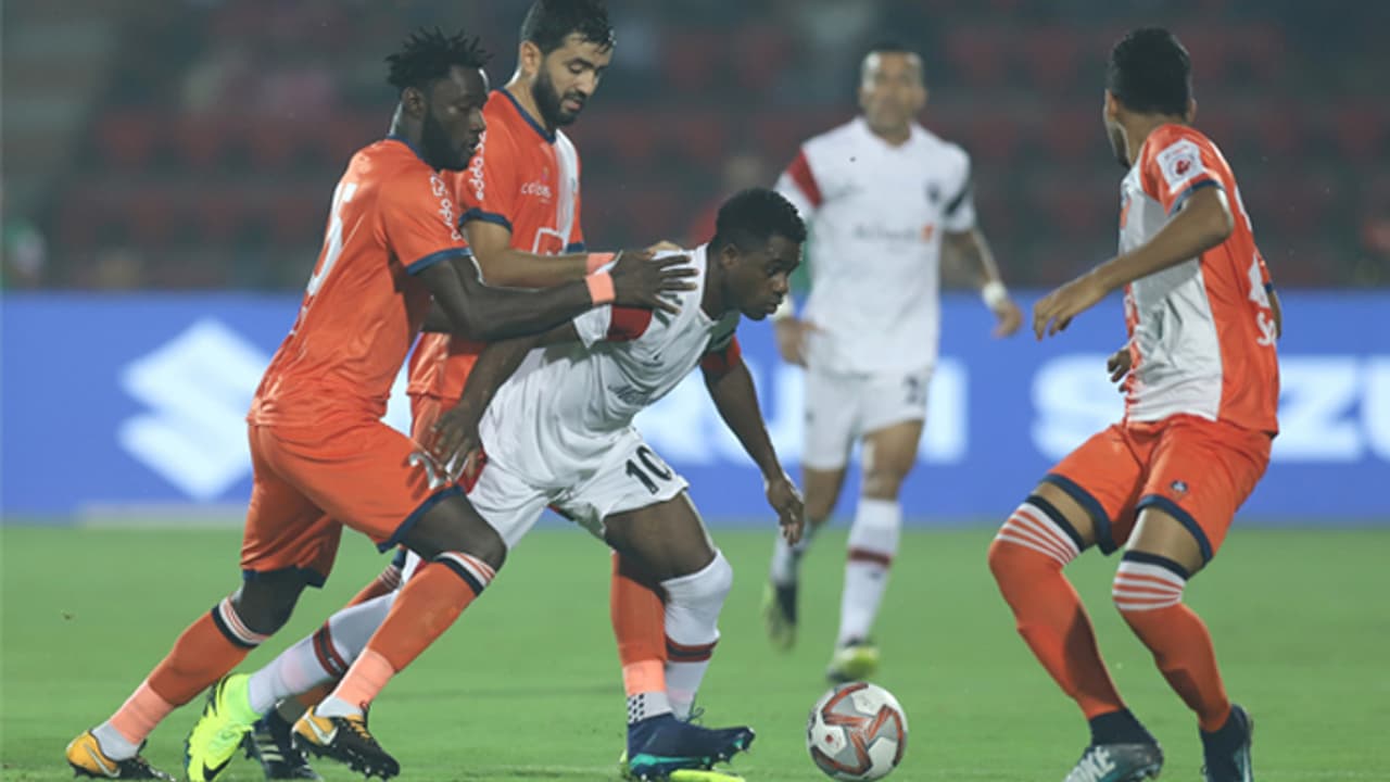 മത്സരത്തിന്റെ എട്ടാം മിനുട്ടില് തന്നെ നോര്ത്ത് ഈസ്റ്റ് യുണൈറ്റഡ് ഫെഡറിക്കോയിലൂടെ ലീഡ് നേടി. എന്നാല് ആറു മിനുട്ടുകള് മാത്രമെ ആ ലീഡ് നീണ്ടു നിന്നുള്ളൂ. 14ആം മിനുട്ടില് ഗോവയുടെ സ്പാനിഷ് സ്ട്രൈക്കര് കോറോ ഗോവയ്ക്ക് സമനില നേടിക്കൊടുത്തു. കോറോ തന്നെ 39ആം മിനുട്ടില് മറ്റൊരു ഗോളിലൂടെ ഗോവയെ മുന്നിലും എത്തിച്ചു.