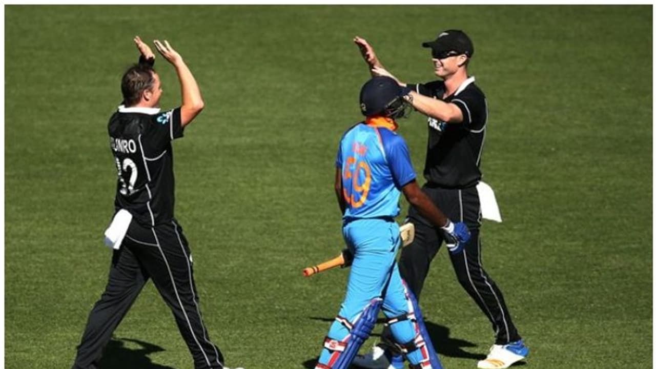 വെല്ലിങ്ടണ്: ന്യൂസീലന്ഡിനെതിരായ അഞ്ചാം ഏകദിനത്തില് തുടക്കത്തില് വന് ബാറ്റിംഗ് തകര്ച്ചയാണ് ഇന്ത്യ നേരിട്ടത്. വെറും18 റണ്സിന് നാല് മുന്നിര വിക്കറ്റുകള് നഷ്ടമായി. പിന്നാലെ അഞ്ചാം വിക്കറ്റില് 98 റണ്സ് കൂട്ടിച്ചേര്ത്ത അമ്പാട്ടി റായുഡു- വിജയ് ശങ്കര് സഖ്യം ഇന്ത്യയെ കരകയറ്റുകയായിരുന്നു. എന്നാല് 32-ാം ഓവറിലെ അഞ്ചാം പന്തില് ഇരുവര്ക്കുമിടയിലെ ആശയക്കുഴപ്പം ഇന്ത്യയുടെ അടുത്ത വിക്കറ്റ് നഷ്ടമാക്കി.