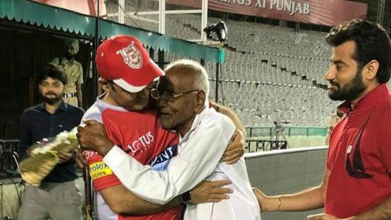 തൊണ്ണൂറ്റിമൂന്ന് വയസ് പ്രായമുള്ള ഓം പ്രാകാശാണ് വീരുവിനെ നേരില് കാണാന് സ്റ്റേഡിയത്തിലെത്തിയത്. അതും പാട്യാലയില് നിന്ന് ചണ്ഡിഗഢ് വരെ യാത്ര ചെയ്ത്. ഇഷ്ട ക്രിക്കറ്റ് താരത്തെ കാണാനായതിന്റെ അഹ്ലാദം ഓം പ്രകാശിന് അടക്കാനായില്ല. തന്റെ വലിയ ആരാധകനെ കണ്ട വീരുവും സന്തോഷം മറച്ചുവെച്ചില്ല. ഓം പ്രാകാശിനെ ആലിംഗനം ചെയ്ത് സ്വീകരിച്ച വീരു കാലില് തൊട്ട് അനുഗ്രഹം വാങ്ങുകയും ചെയ്തു. ഒപ്പം നിന്ന് ഫോട്ടോ എടുക്കാനും സെവാഗ് മറന്നില്ല.