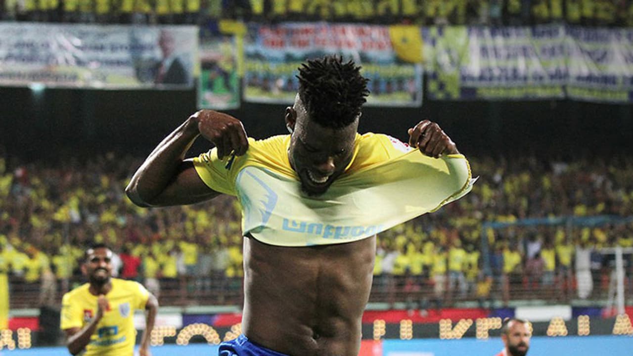 Belfort & thousands of @KeralaBlasters fans thought they had the lead but the linesman's flag was up. #ISLMoments#KERvDEL#LetsFootballpic.twitter.com/6JG05B2bTH