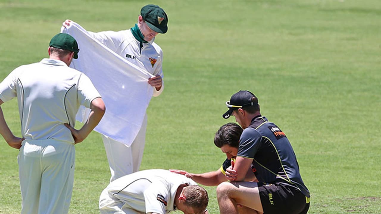 പെര്ത്ത്: ഷെഫീല്ഡ് ഷീല്ഡ് മത്സരത്തിനിടെ ബൗണ്സര് തലയില്ക്കൊണ്ട ഓസ്ട്രേലിയന് ടെസ്റ്റ് താരം ആദം വോഗസിനെ ആശുപത്രിയില് പ്രവേശിപ്പിച്ചു. ടാസ്മാനിയക്കെതിരെ വെസ്റ്റേണ് ഓസ്ട്രേലിയക്കുവേണ്ടിയാണ് വോഗസ് ക്രീസിലിറങ്ങിയത്. ടാസ്മാനിയന് താരം കാമറൂണ് സ്റ്റീവന്സന്റെ ബൗണ്സര് ഹെല്മറ്റില് കൊണ്ട ഉടനെ നിലത്ത് കുനിഞ്ഞിരുന്ന വോഗസ് വേദന കൊണ്ട് പുളഞ്ഞു. ഉടന് ആശുപത്രിയിലേക്ക് മാറ്റിയ വോഗസിനെ പരിശോധനകള്ക്ക് വിധേയനാക്കി.