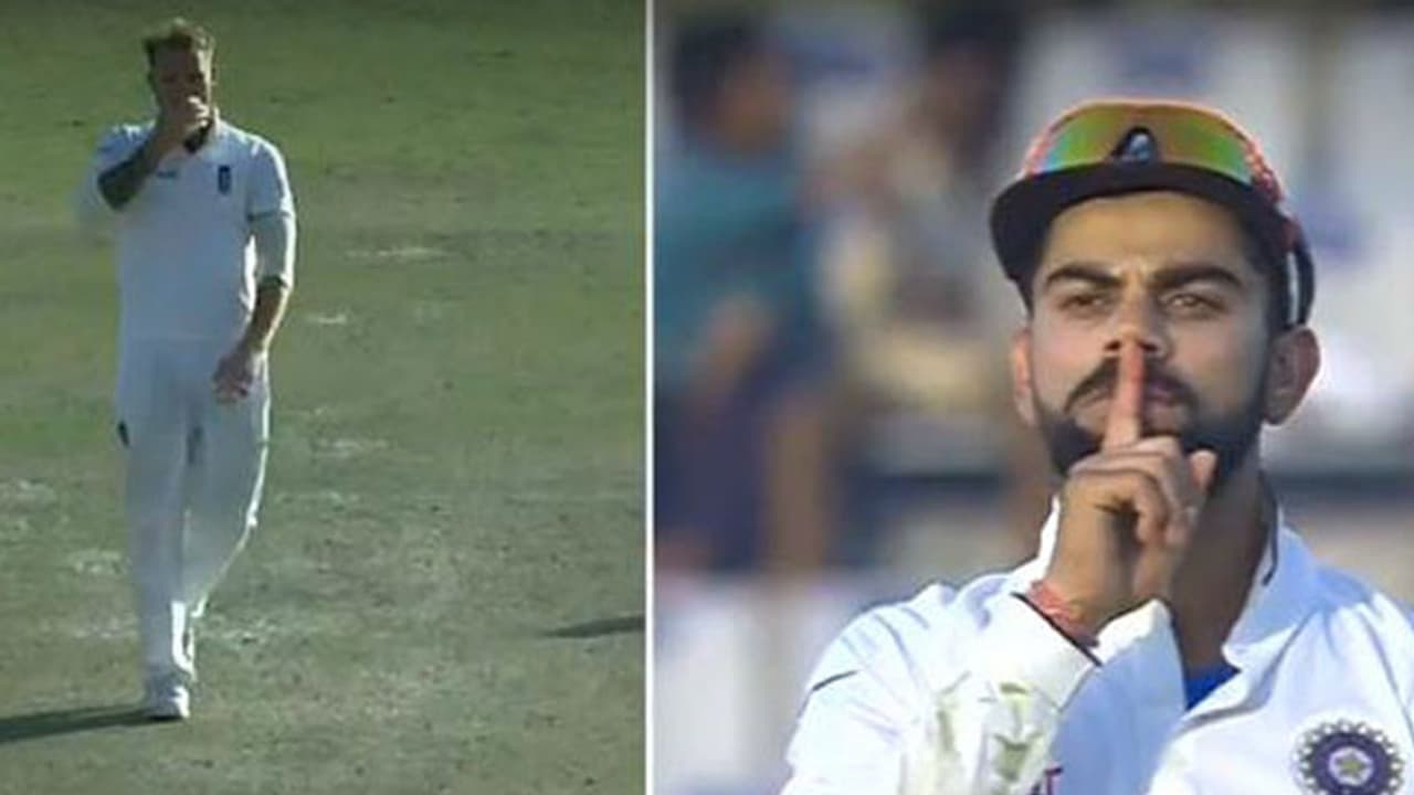 അതേ നാണയത്തില് ഇന്ന് കൊഹ്ലി തിരിച്ചടിച്ചു. സ്റ്റോക്സ് ആഘോഷിച്ച രീതിയിൽ തന്നെ ഇംഗ്ലീഷ് താരത്തെ പവലിയനിലേക്ക് അയച്ചാണ് കോഹ്ലി പകരം വീട്ടിയത്.അഞ്ച് റണ്സാണ് സ്റ്റോക്സ് നേടിയത്.